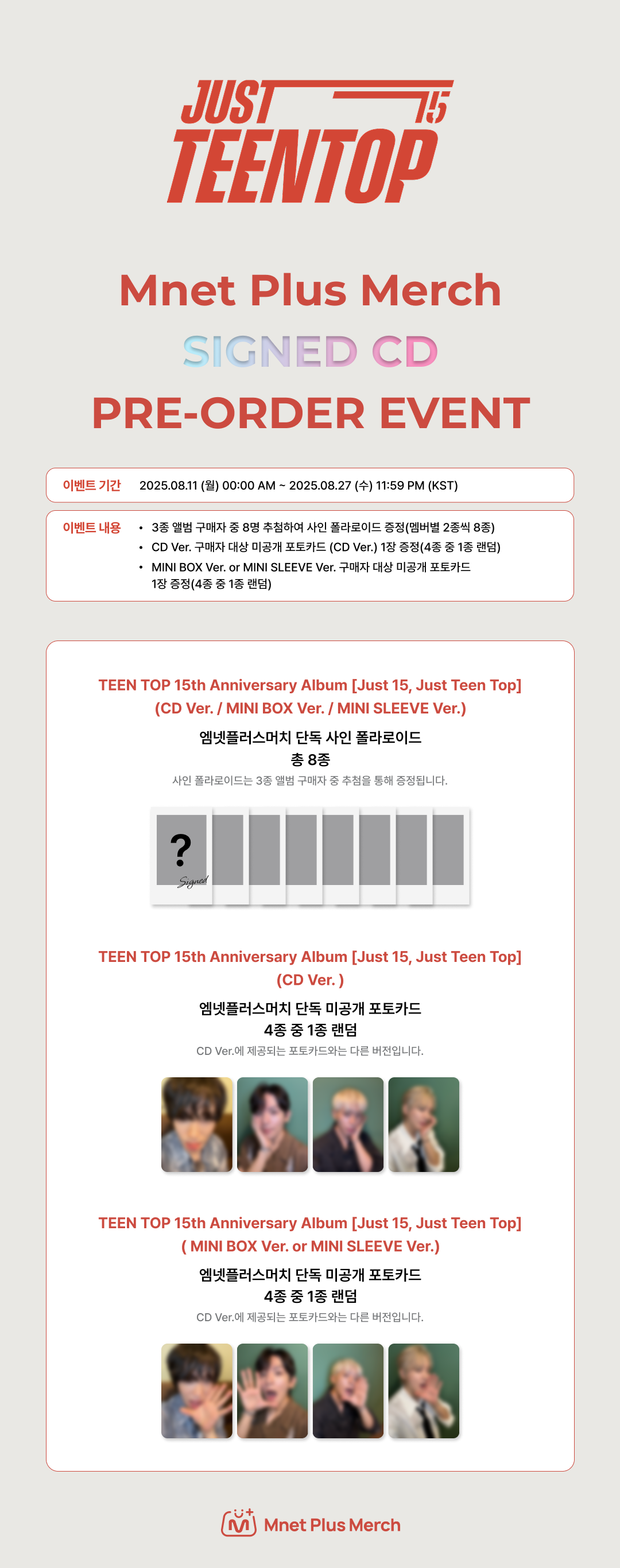 [Notice] TEEN TOP - [Just 15, Just Teen Top] SIGNED CD Sales
