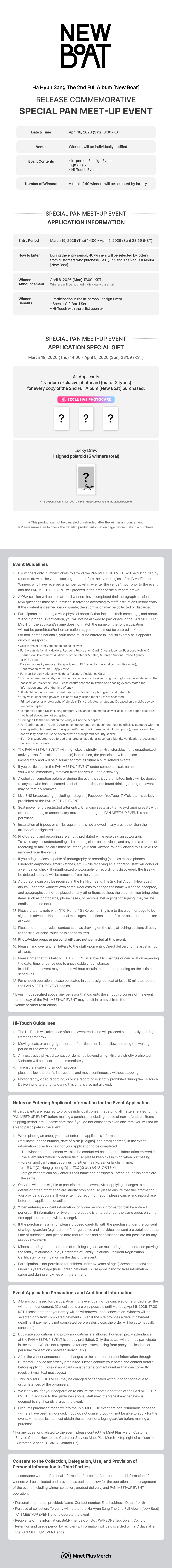 [Notice] Ha Hyun Sang The 2nd Full Album [New Boat] FAN MEET-UP EVENT
